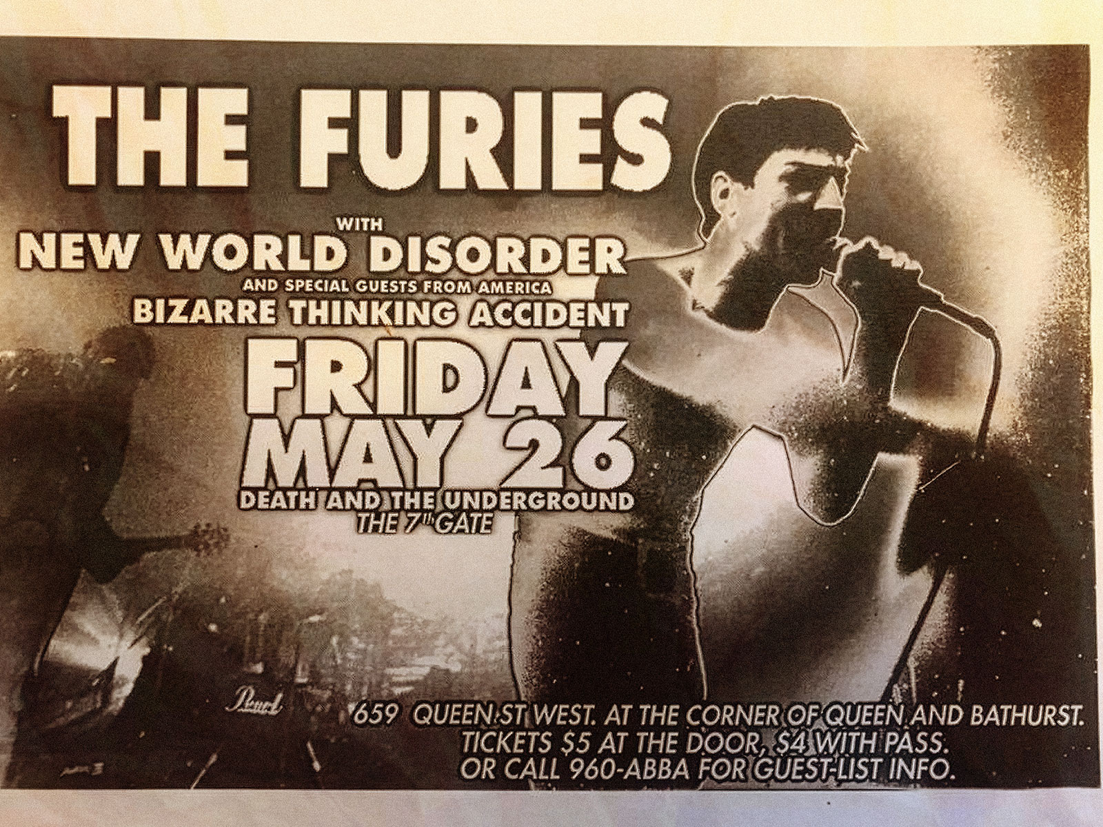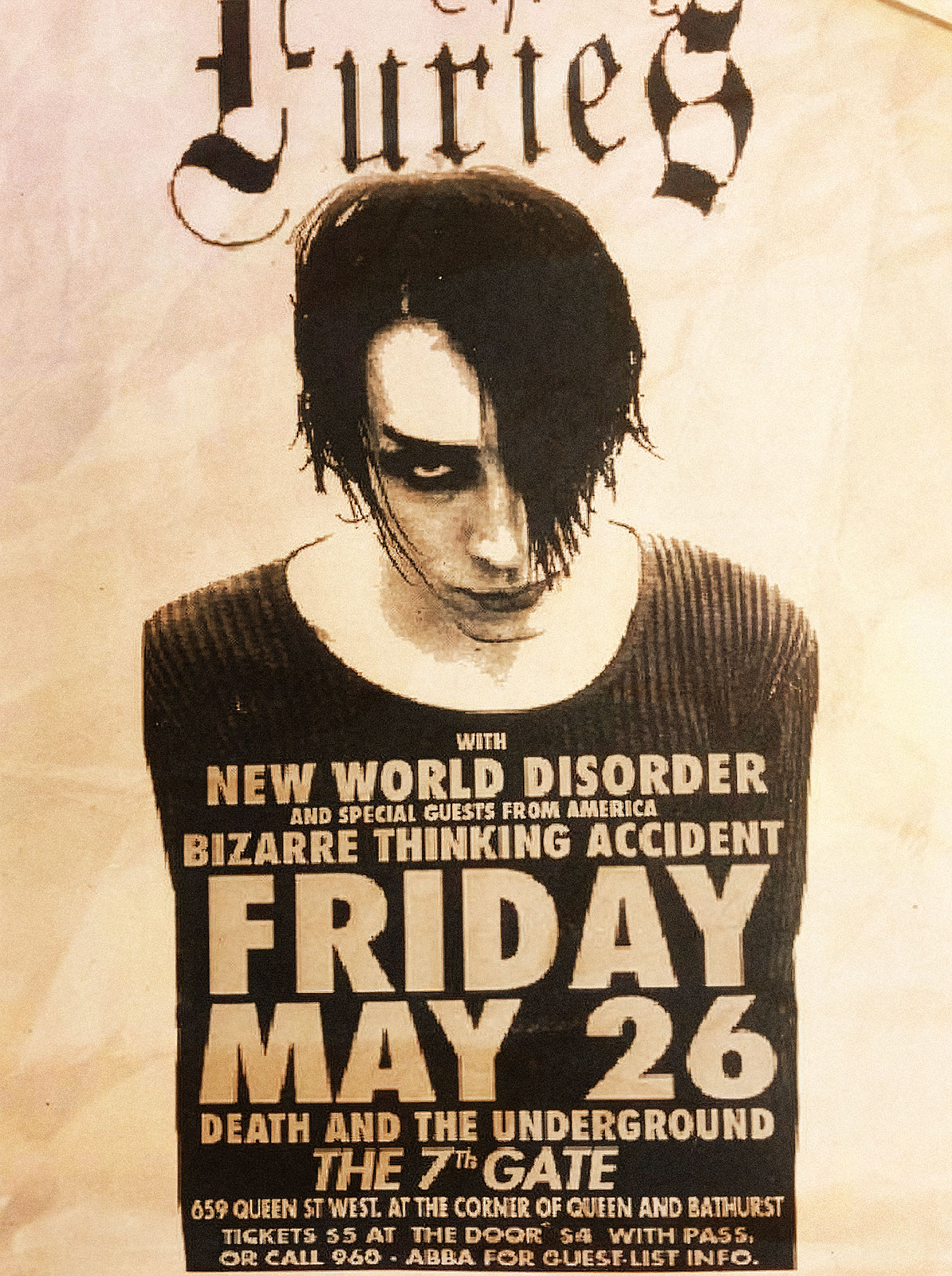 - live performance,The Furies, , baron marcus, new world disorder, death and the underground, proto-goth band, Toronto 1986–1996