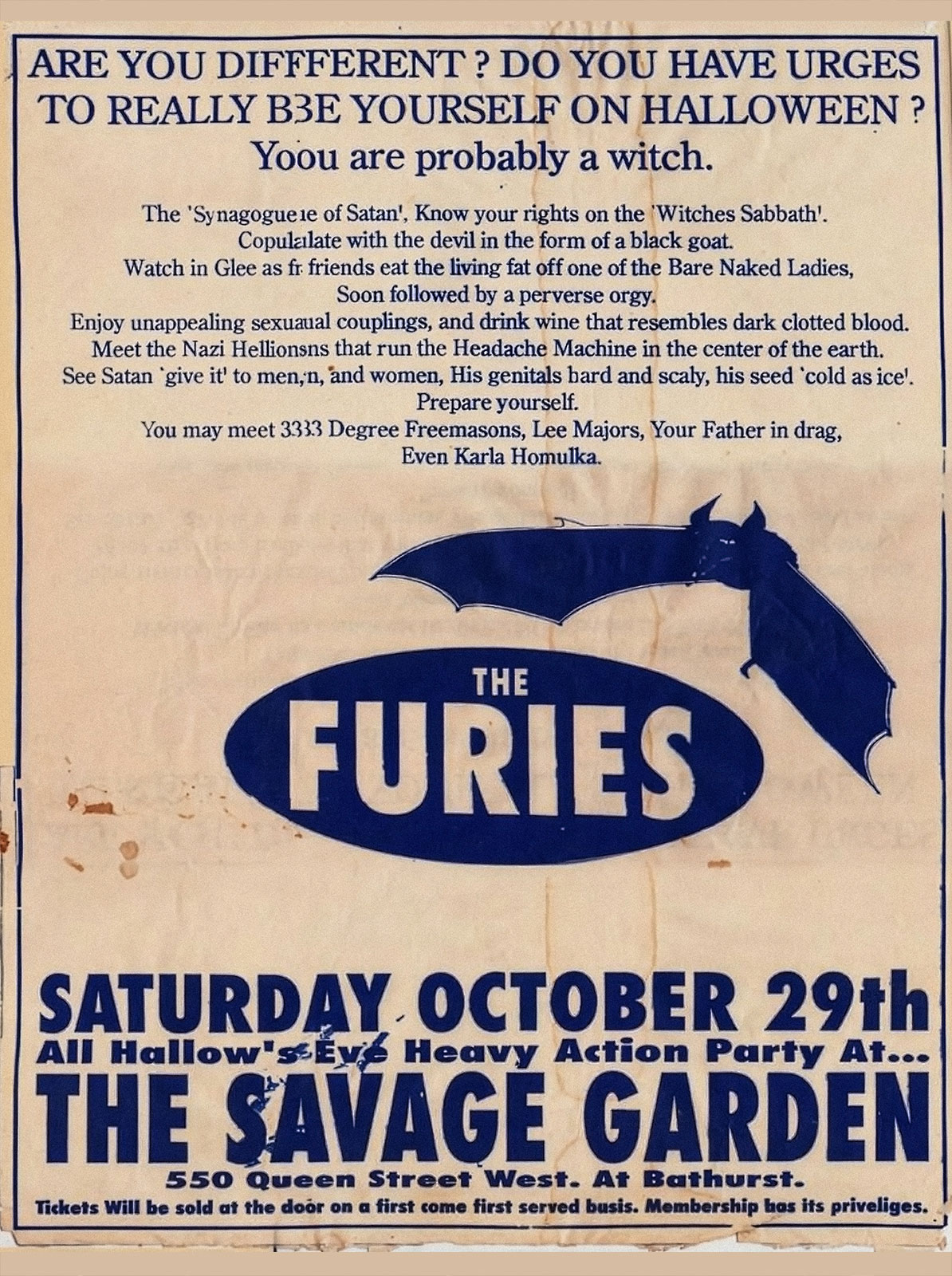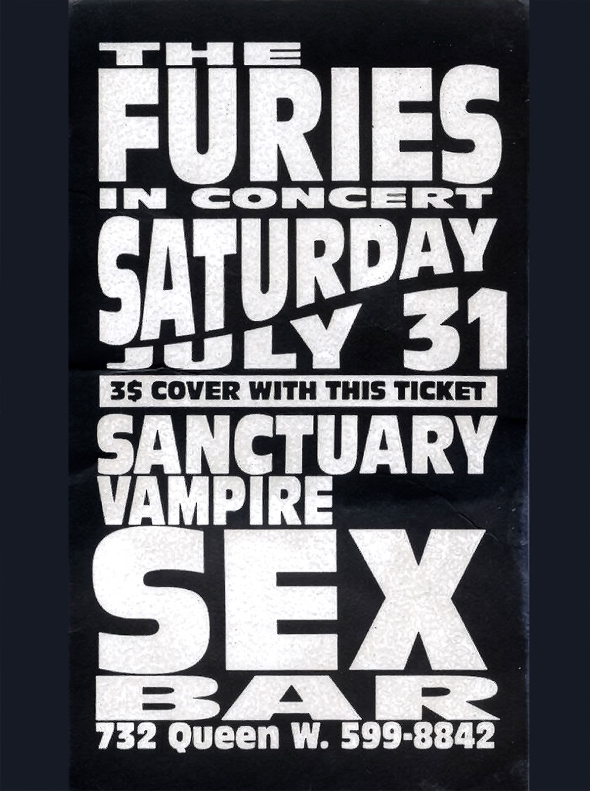 - live performance,The Furies, sanctuary, vampire sex bar, proto-goth band, Toronto 1986–1996